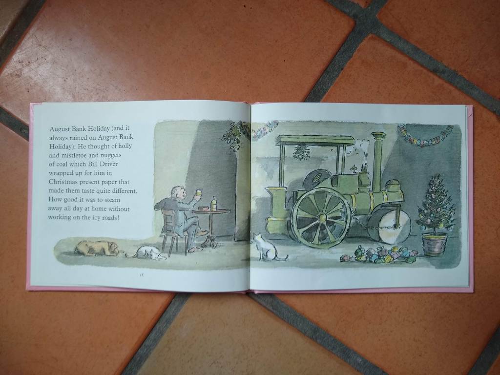 The previous three books seemed to take place in an idyllic version of the early 1900s; I presume modeled on the author’s childhood. This book is more contemporary, taking place in the London airport (Greene doesn’t specify which). The stakes are quite low in this book compared to the previous books. No one is looking down the gaping maw of hunger. All that is at risk is that someone might get away with smuggling gold into England and not pay customs. I know that when Greene worked in the intelligence services during WWII his primary goal was to prevent the smuggling of industrial diamonds to the Axis from Africa. Perhaps that informed him in writing this book and the smuggling he fought was a useful part of the war effort. On the other hand, this book would appeal to only children who believe in the importance of law-and-order or is intended to inculcate such a belief. Thank God steamrollers still know right from wrong!